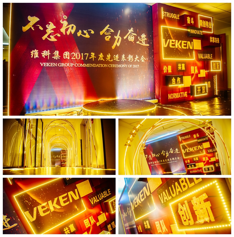 “不忘初心,合力奮進(jìn)”維科集團(tuán)2017年度表彰大會(huì)主題背景簽到處及會(huì)場(chǎng)通道入口